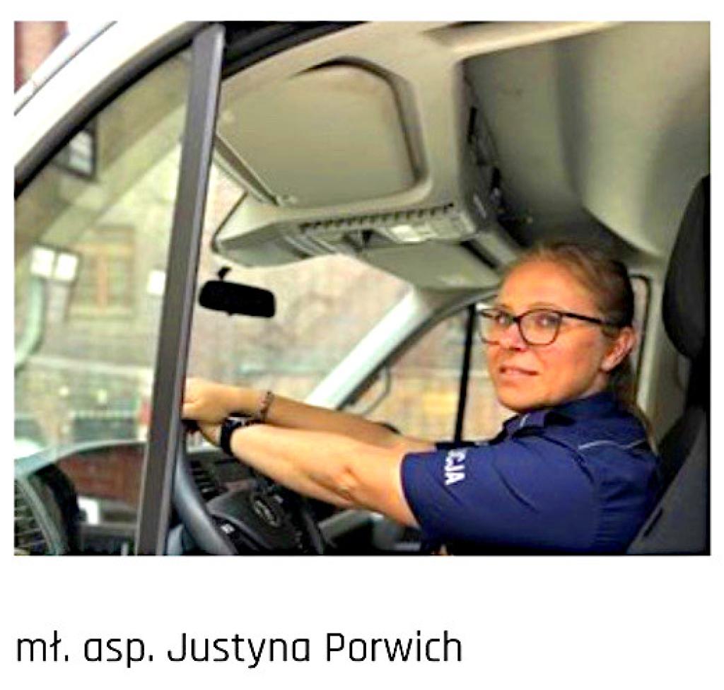 Mł. asp. Justyna Porwich pełni służbę w Wydziale Konwojowym w KWP we Wrocławiu. Gdy wracała ze służby pociągiem, z drugiego końca wagonu usłyszała wołanie o pomoc. Bez wahania ruszyła w tamtym kierunku. Na podłodze leżała kobieta, jej oddech był płytki i powoli traciła funkcje życiowe. Policjantka rozpoczęła resuscytację krążeniowo-oddechową. Widząc zdecydowaną i profesjonalną reakcję funkcjonariuszki, do pomocy zaangażowali się jeszcze dwaj mężczyźni. Dzięki temu resuscytacja mogła być prowadzona ciągle i na zmianę, aż do zatrzymania pociągu i przekazana chorej w ręce ratowników medycznych. Pomoc znowu dotarła na czas, kobieta odzyskała funkcje życiowe. (KWP we Wrocławiu / TD)