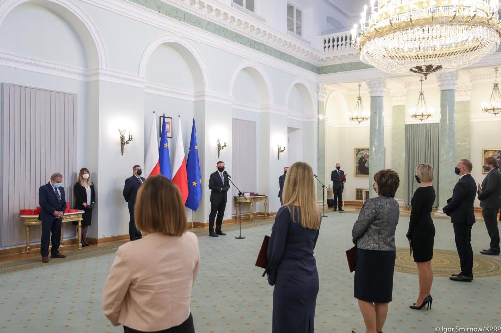 Prezydent Rzeczypospolitej Polskiej Andrzej Duda wręczył akty powołania do pełnienia urzędu na stanowisku sędziego oraz asesora sądowego. Nowo powołani sędziowie złożyli wobec Prezydenta RP ślubowanie.