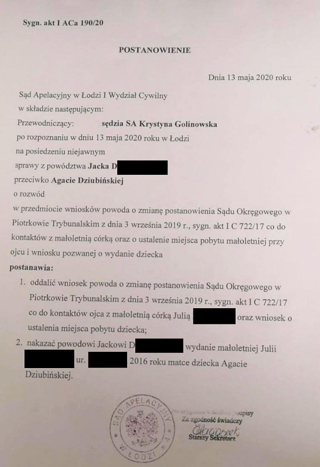 Przypomnijmy, że są trzy postanowienia sądowe nakazujące nauczycielowi Jackowi D. zwrot 3,5-letniej Julki matce. Ale on polskie prawo ma za nic i od 3 maja 2020 więzi w domu dziecko szydząc z polskiego Wymiaru Sprawiedliwości.