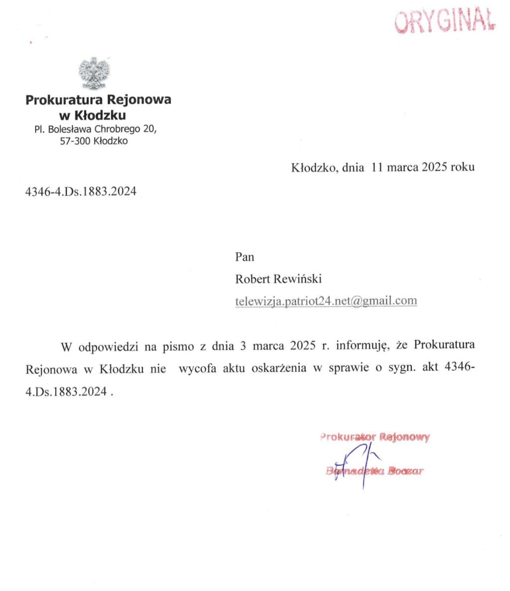To kolejny przykład bezdowodowej walki kłodzkiej policji i prokuratury z miejscową pracodawczynią Bożena Zalewską. Przypomnijmy, że 12 lat temu została ona oskarżona o znieważenie policjantów na służbie, pomimo że dwóch bezpośrednich świadków zaprzeczyło, by coś takiego miało miejsce. W tym jeden strażnik miejski, którego obecność policjanci ukryli przed sądem!