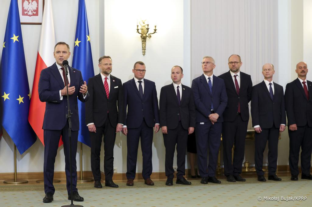 Podczas uroczystości w Pałacu Prezydenckim Prezydent Karol Nawrocki wręczył nominacje Doradcom etatowym i społecznym. – Dziękuję za to, że jesteście Państwo ze mną i że przyjęliście moje zaproszenie do ciężkiej pracy przez najbliższe 5 lat. Choć formuła doradców etatowych i społecznych jest nieco inna niż formuła pracy administracyjnej, ale przy Państwa głębokiej wiedzy, doświadczeniu i życiorysach wiem, że wspólnie będziemy mogli osiągnąć dla naszej ojczyzny wiele – mówił Prezydent RP.