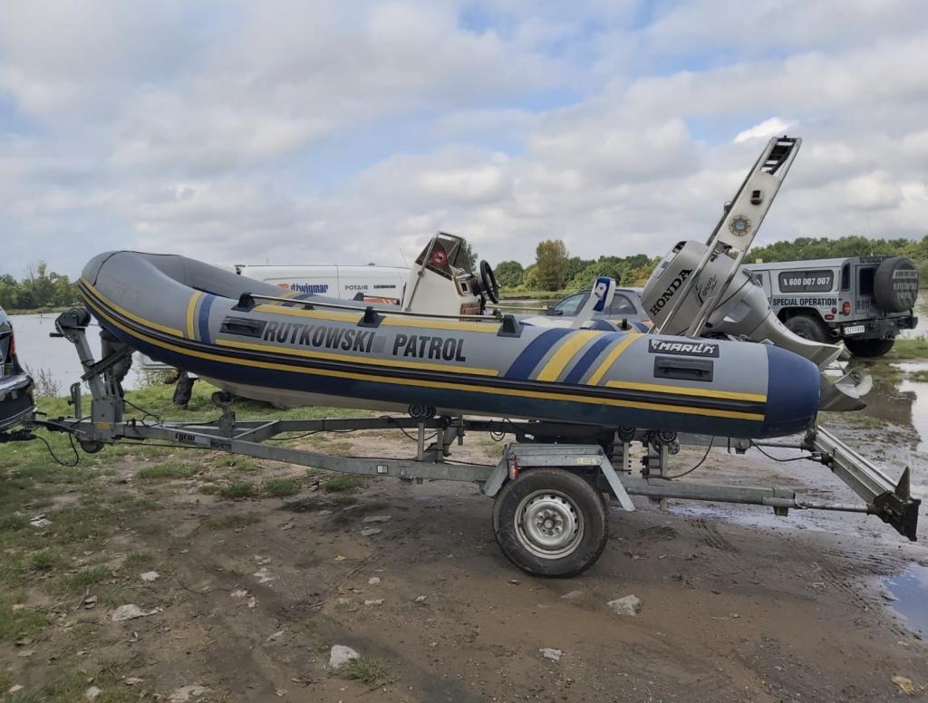 Na miejscu jest już pierwsza grupa poszukiwawcza. Zjeżdżają wozy operacyjne i łódź do poszukiwań na wodzie.